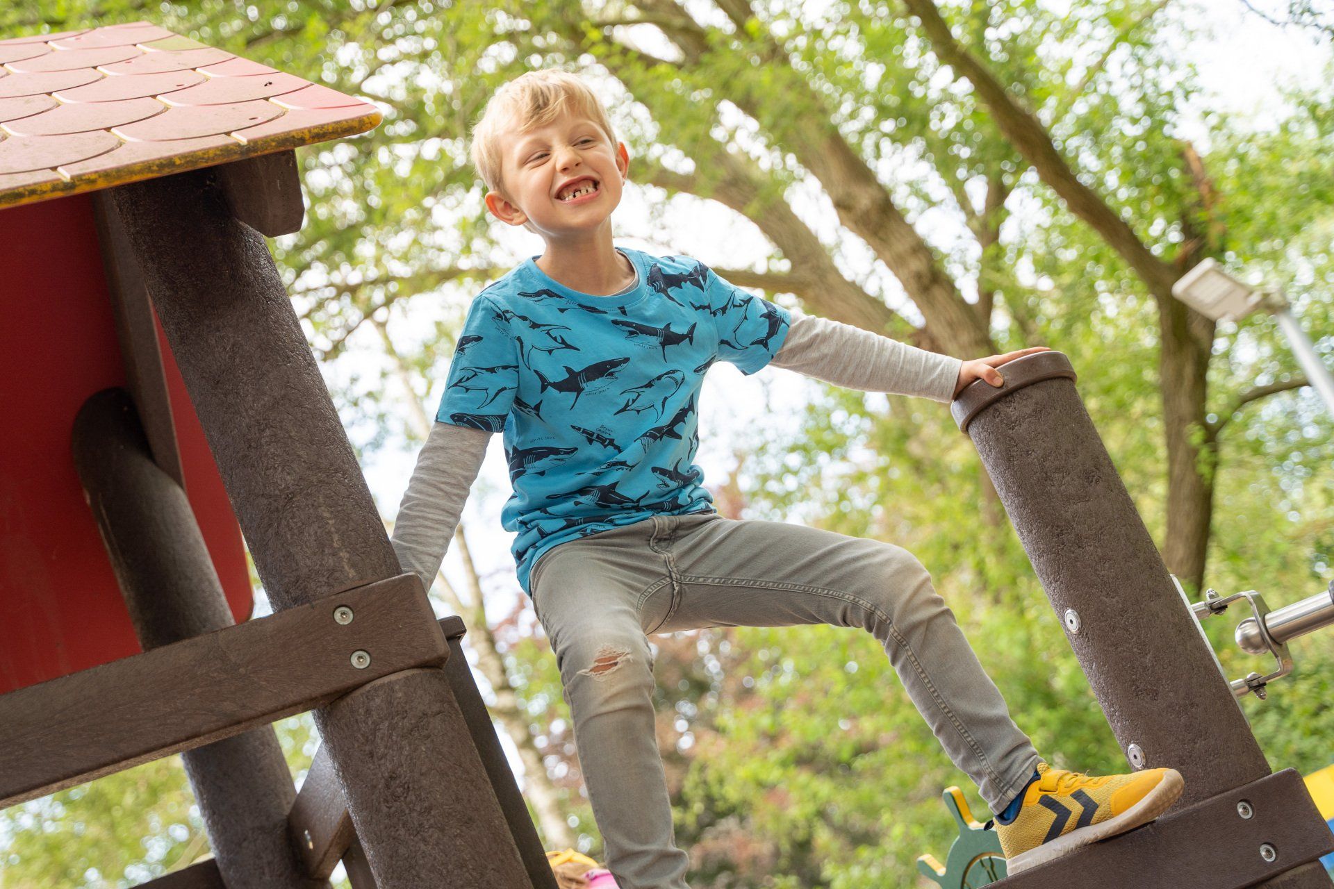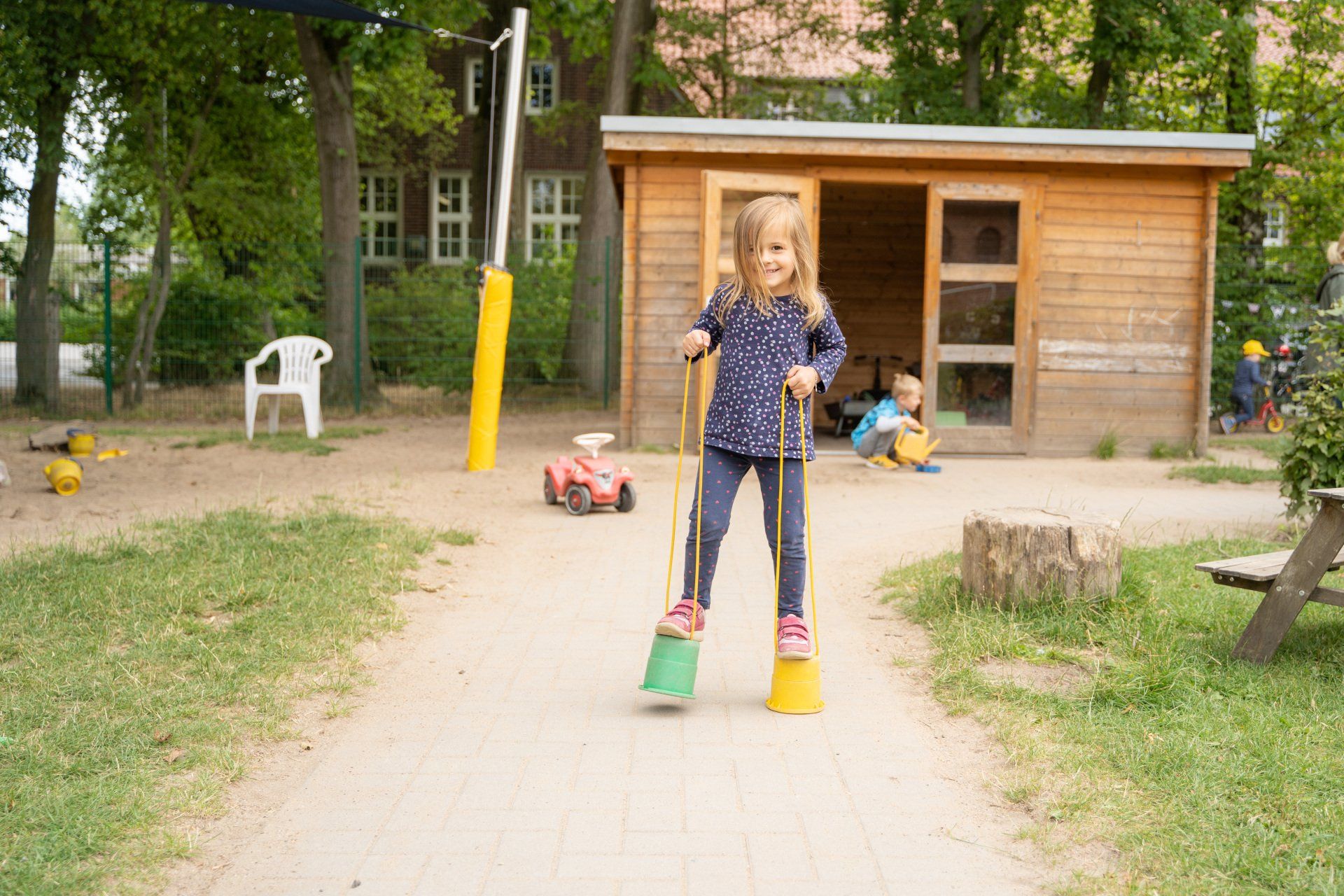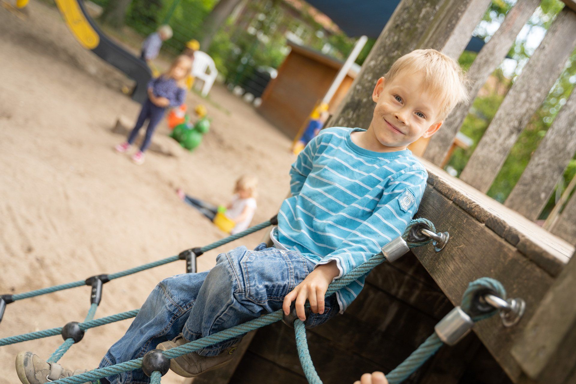 Der große Außenspielbereich bietet zu allen Jahreszeiten vielfältige Spiel- und Bewegungsmöglichkeiten.