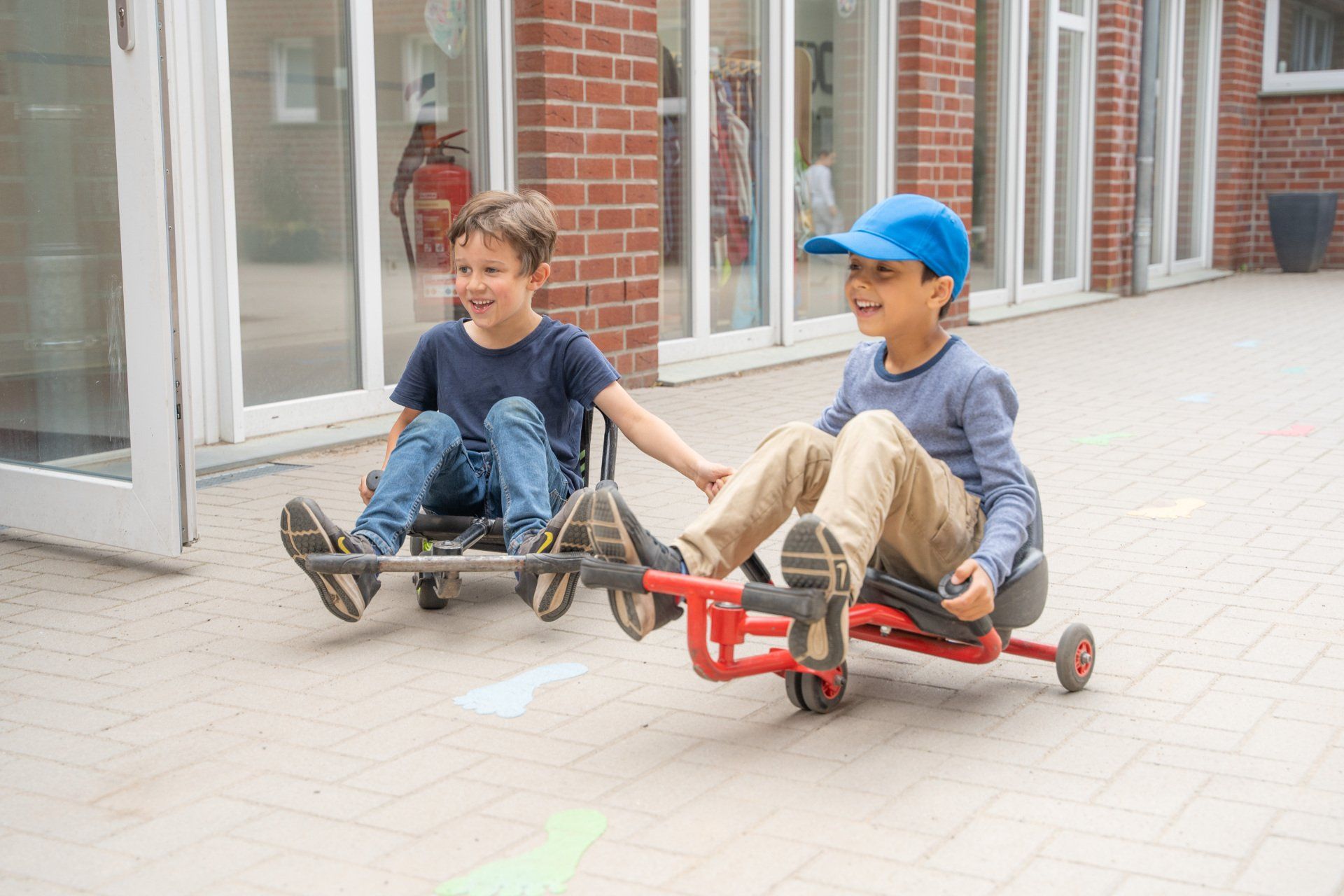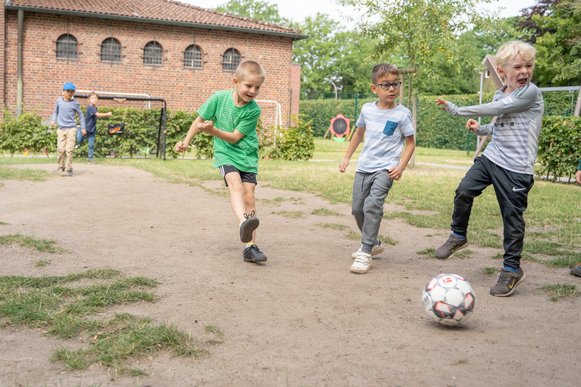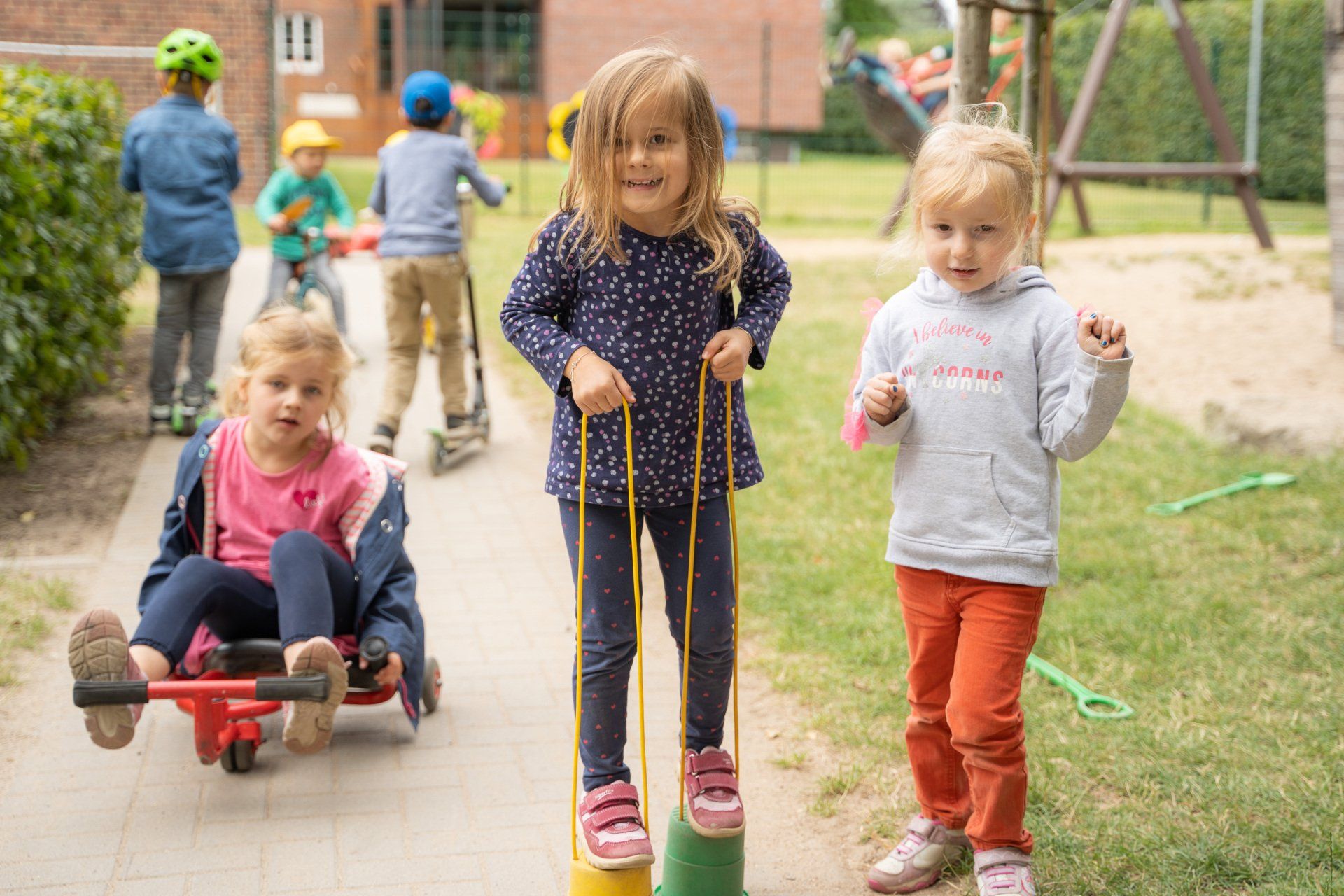 Der große Außenspielbereich bietet zu allen Jahreszeiten vielfältige Spiel- und Bewegungsmöglichkeiten.